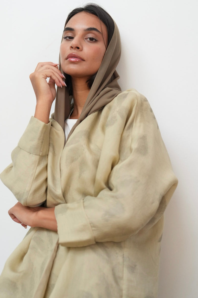 - Organza / Chiffon overlays: light structure, movement, and dimension (organza abaya, layered open abaya)